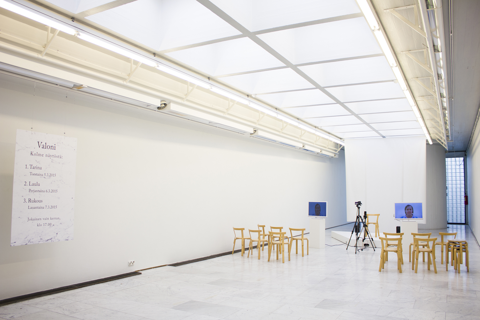 Performanssin ja mediainstallaation galleriatilassa yhdistävä Valoni on omakuvallinen hahmotaideteos. Se toteutettiin kolmena erillisenä yleisön edessä kameralle taltiointuna esityksenä Kluuvin galleriassa maaliskuussa 2015. Performanssit olivat: 1. Tarina, 2. Laulu ja 3. Rukous, ja ne olivat myöhemmin nähtävissä mediainstallaationa osana näyttelynä. Esitykset kohdistettiin kameralle, jotta yleisö voisi katsoa Valoni-hahmoa monitoreissa suoraan silmiin ja olla hahmon puheen välittömänä kohteena.