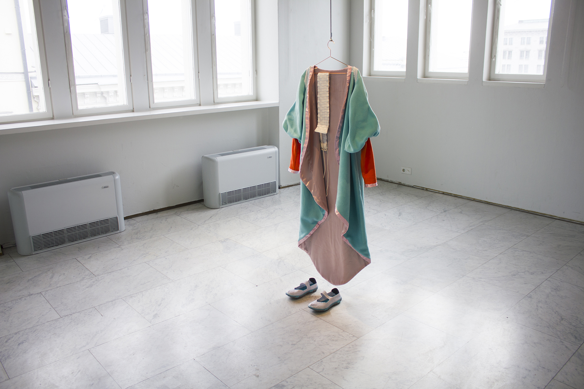 Näyttelyssä oli myös esillä performansseissa käytetty Valoni-asu. Asu valmistui Jenni Luhdan (tuolloin Markkanen) yhteistyönä tekstiilisuunnittelija Dea Maria Anastasian kanssa.